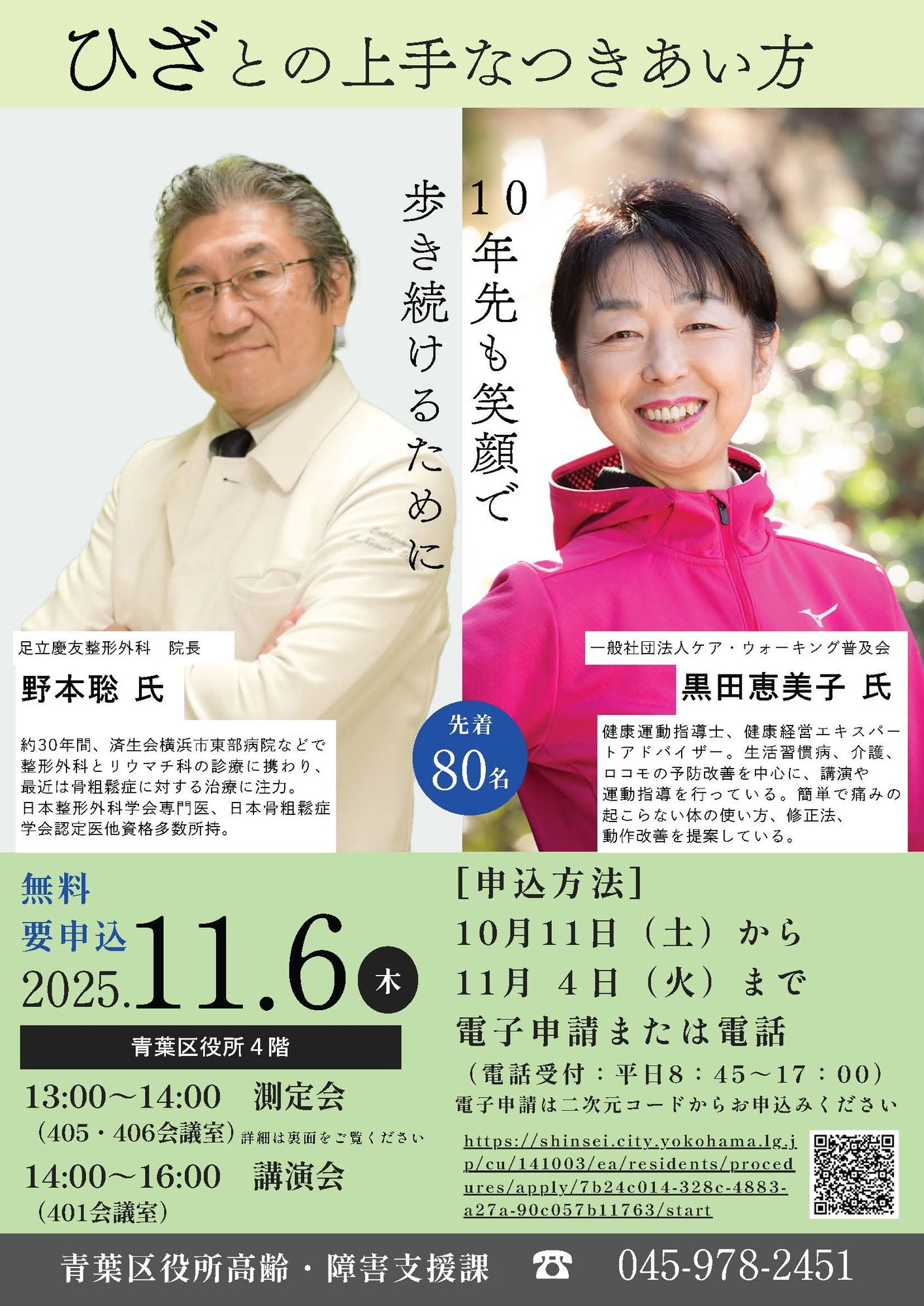 【受付終了】「ひざとの上手なつきあい方」をテーマに講演会を開催します!