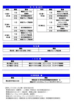 - 男女各総合1位~3位の方には、表彰式にて表彰状を授与します。