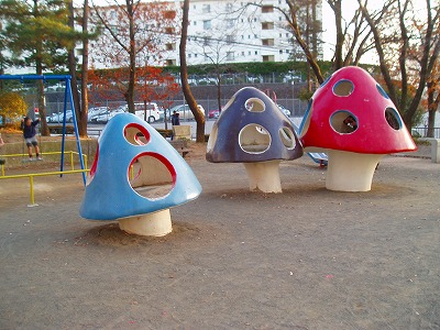 公園内に大きな三つのきのこ遊具があるため、地元からきのこ公園として親しまれている公園です。