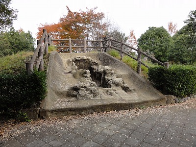 大きな多目的広場がある公園です。6世紀後半の古墳を復元した「赤田2号墳」が見られます。