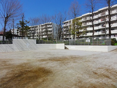 あざみ野団地内にある公園です。グラウンドの壁面にはかわいいイラストが描かれています。