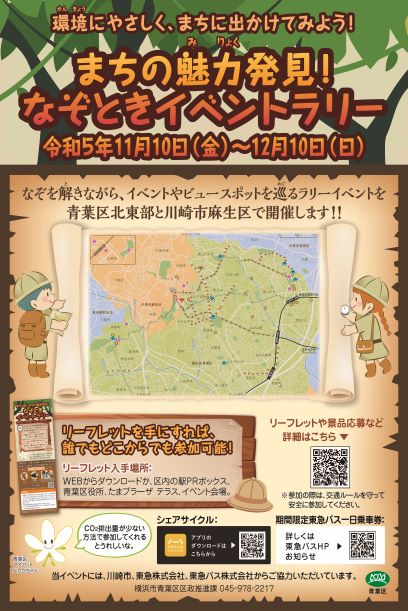 青葉区北東部と川崎市麻生区周辺で開催する、謎解きラリーだよ。