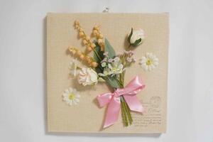 リネンを貼ったオリジナルファブリックボードを使って、アートフラワーの花束コラージュを作ります。親子一緒に楽しみながら素敵な時間を過ごしませんか。