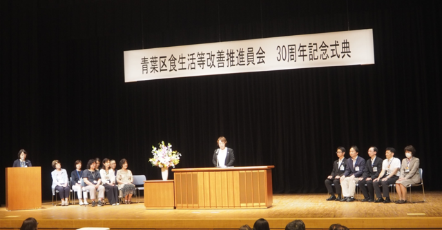 6月26日に、青葉区と同じく今年30周年を迎えた「青葉区食生活等改善推進員会」の記念式典に参加しました。食生活等改善推進員(愛称:ヘルスメイト)とは、地域で食育を推進しているボランティアの方々です。約1年間「食」を中心とした健康づくりを学んだうえで、日頃から地域ケアプラザ、小学校等で啓発を行い、自分の健康、そして家族、地域へと食育を広めていらっしゃいます。式典と同時期に区庁舎1階で実施されたパネル展示でも食の大切さを呼び掛けられており、「年齢を重ねても元気でいられるのはヘルスメイト活動のおかげです。」と言うベテランヘルスメイトさんの言葉を思い起こしました。式典では、長年ヘルスメイトとして活躍された方へ感謝状を送らせていただき、みなさんも笑顔でお祝いの時間を過ごされていました。