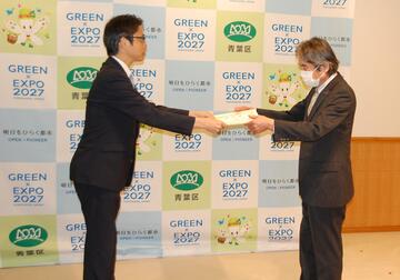 続いて、11月26日(火曜日)に、税務署・税務懇話会主催の税務表彰式にて、令和6年度「税についての作文」コンクールの青葉区長賞をお渡ししました。
