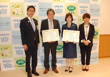 11月13日(水曜日)に横浜市納税奨励表彰のうち青葉区長表彰の表彰式を青葉区役所で行いました。この表彰は、市税の納付意識の向上につながる活動で、功績のあった青葉区の方を表彰するものです。今年度は緑納税貯蓄組合連合会監事の佐藤 正文様と公益社団法人緑法人会常任理事兼女性部会部会長の森 栄子様を表彰し、私から表彰状と記念品をお渡ししました。