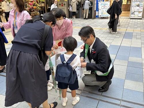 あいにくの雨模様でしたが、各駅で募金活動をされている皆様の大きな声での呼びかけに、お子様からご高齢の方まで、実に多くの区民の皆様から温かいご寄付をいただきました。