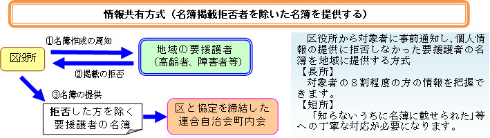 「情報共有方式」の名簿は、災害時要援護者名簿への掲載を拒否した方を除いた情報を掲載します。