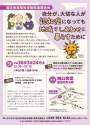 平成30年3月24日(土曜日)、旭公会堂講堂にて、旭区地域福祉保健推進講演会「自分が、大切な人が認知症になっても、地域でしあわせに暮らすために」を開催しました。