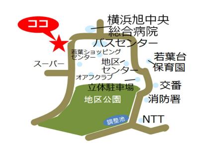 - 鶴ケ峰駅から神奈中バス若葉台中央行ほか「若葉台中央」下車 徒歩2分