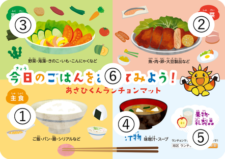 「あさひ食育ランチョンマット」を使って、食事バランスの確認を!
