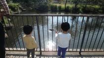 「こども自然公園」の大池には、たくさんの生き物がいるよ。サギや、カモ、カメ、コイなど…見飽きない…(注:1度見始めると柵から離れたくなくなっちゃうかも!?)。