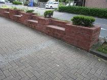 道沿いにある座れる花壇。何色の花が咲くのかな?おひさまに温められたレンガは、意外とぽかぽかしているよ。ちょっと固いので、注意して座ってね。