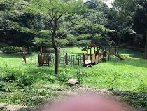 スタート地点からすぐに着いちゃう今宿東公園。自然林が広がる広々とした公園です。アスレチックで遊べます。