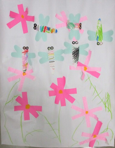 虫は折り紙や画用紙で作り、春の自然をイメージして製作しました。