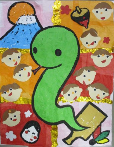子ども達と福笑いを楽しみながら、良い一年となるようにと祈って作品をつくりました