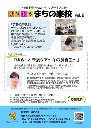 対 象:旭区在住、在勤、在学(中学生以下は保護者同伴)