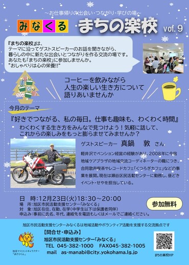 12月のまちの楽校のテーマは「好きでつながる、私の毎日。仕事も趣味も、わくわく時間」
