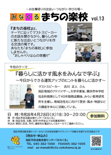 4月のまちの楽校のテーマは「暮らしに活かす風水をみんなで学ぶ」