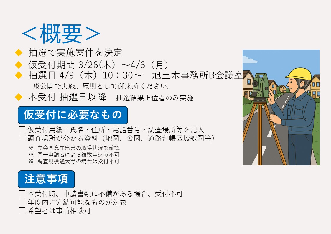 令和8年度 道水路等境界調査(委託方式)申請の受付・抽選について(旭土木事務所)