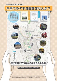希望が丘の目指す将来像(ミライ)やまちづくりの方向性を示した「キボウのタネ」とそれを実現するための「街のイマタネ」「プロジェクトのタネ」の3つで構成されています。