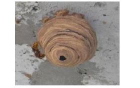 | 巣の形 | おわん型で、六角形の巣穴がたくさん見える | ボール型で、出入り口の穴は一つ |