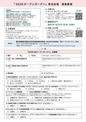 「横浜市電子申請・届出システム」の「2026旭オープンガーデン会場募集」ページに繋がります。