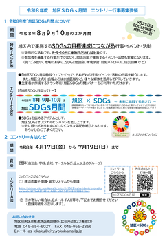 「旭区SDGs月間」にエントリーしていただける、行事・イベント・活動などを募集しています。