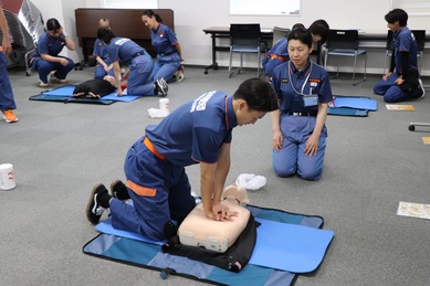 防災指導や、学校や町内会での救命講習等、男性団員の参加が比較的少ない消防団活動の中、多くの女性団員が参加しています。