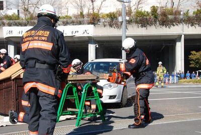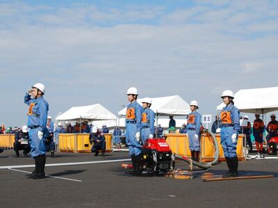 内容:横浜市内各消防団本部の消防団員が、平素鍛えた消防操法技術の成果を発表するものです。