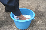 天ぷら油に火が入った場合に、濡れたタオルでナベを塞ぎ空気を遮断して消火(窒息消火)する方法です。