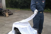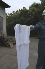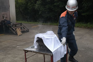 さらに数枚の濡れタオルを掛けて完全に窒息消火する