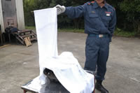 注意!!炎が消えたように見えてもすぐにタオルを取らないでください。再び燃え出すことがあります。