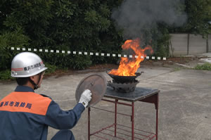 - 消火の際は、腕にはタオルを巻くなどし、やけどをしないよう十分に注意してください。