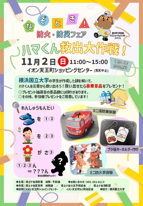 なぞとき!防火・防災フェア~ハマくん救出大作戦!~を開催します!
