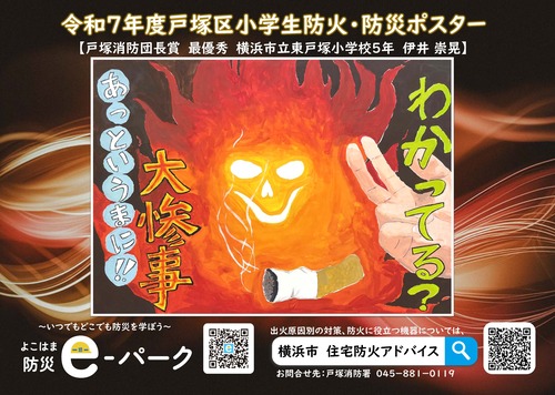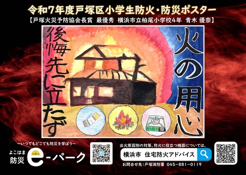 最優秀4作品を活用した令和7年度戸塚区防火・防災ポスターはこちら⇩⇩⇩