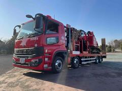 地震、台風等で発生する土砂災害対応のため、整地・運搬・積み込み・掘削機能を有する小型及び中型重機(公道走行はなし)を2台積載、搬送する車両です。重機のアタッチメントを交換することにより、多様な活動が可能となっています。