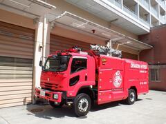 1Km延長可能なホースを積載し、毎分8,000リットルの放水砲を備えた大型放水砲搭載ホース延長車と水中ポンプによる取水で遠距離大容量送水が可能な大容量送水ポンプ車のコンビにより、石油コンビナート火災等に対応する精鋭部隊として、配置されています。愛称は、車両に表示されているロゴマークから「ドラゴンハイパー・コマンドユニット」と呼ばれています。