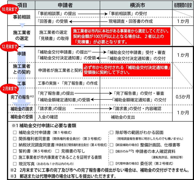 2月末までに工事の完了及び市への完了報告書の提出がない場合は、補助金の交付ができません。