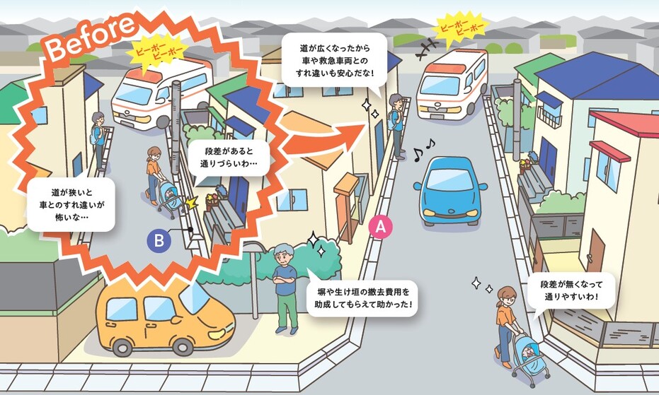 イメージ図【A:道路状整備(段差のない整備)、B:道路状整備以外の整備】