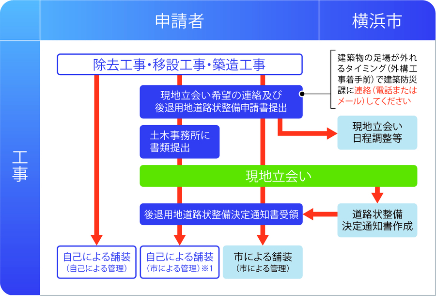 協議の完了後、申請者で支障物の除却・移設工事や擁壁の築造工事を行っていただきます。