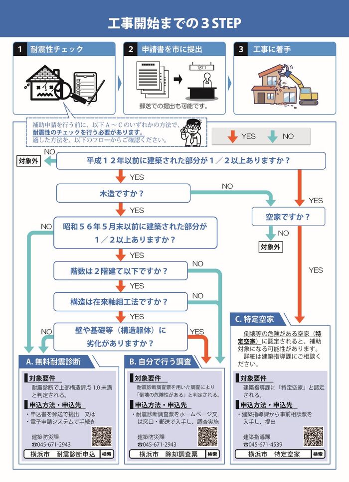 以下のフローから、耐震性チェック方法A~Cいずれかを決定し、各手続きを行ってください。