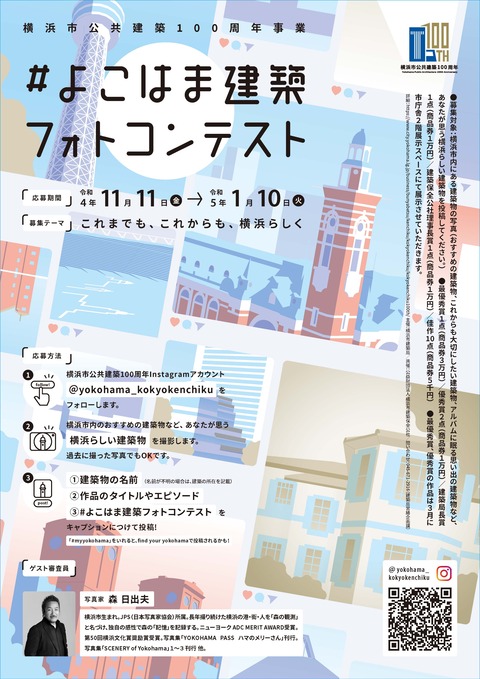 - 令和4年4月1日 横浜市公共建築100周年事業のTwitter・Instagramアカウントを開設しました。