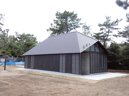 このトイレは海に面して建ち、常に潮風を受ける環境にあって、抵抗することなく受け入れ、屋根勾配を大きくして軒先をシンプルにし、雨水を流れやすく塩分が滞りにくい仕様にしました。