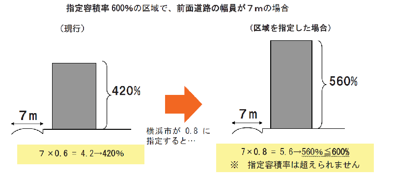 横浜都心機能誘導地区内における前面道路幅員による容積率制限の緩和について