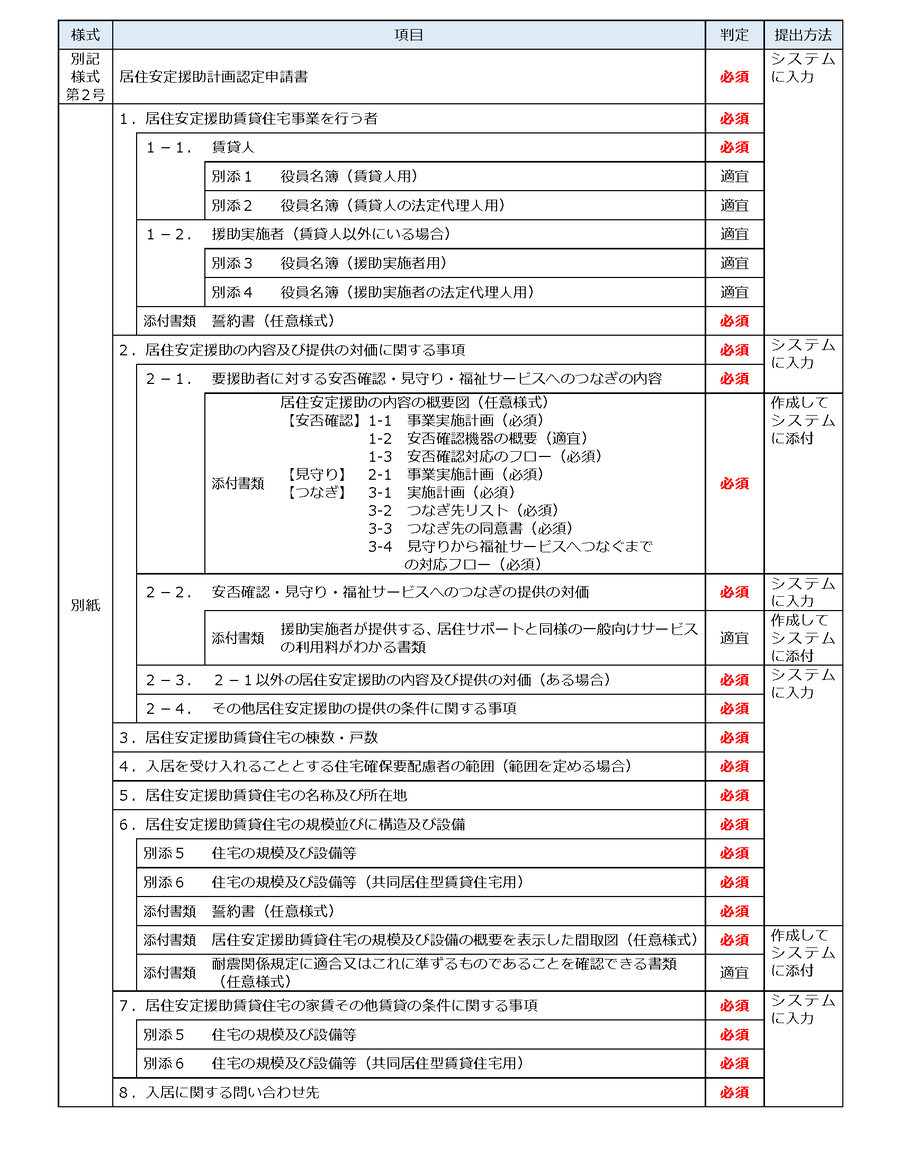 | 1.居住安定援助賃貸住宅事業を行う者 | ・ 認定事業者が法人の場合、法人の役員の氏名 |