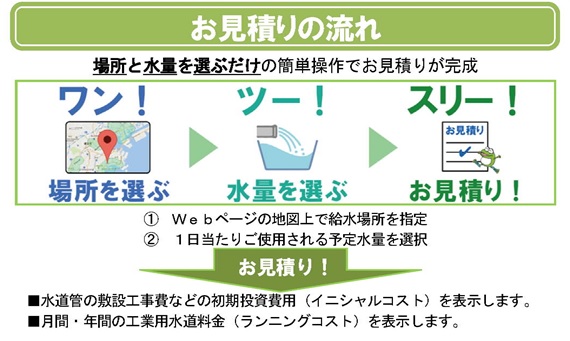 ※お見積り金額は、あくまで参考で、工事費等を確約するものではありません。また、お客さまの給水施設(メーター設置含む)にかかる工事費等は含まれていません。