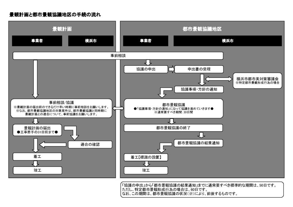 - 景観条例に基づく都市景観協議の対象となる場合は、まず都市景観協議を行います。