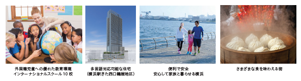 横浜は異なる言葉や文化と共生しようとする環境があります。外資系企業の駐在員やご家族の方にとって居住しやすく、従業員の QOL(Quality Of Life) を保証できます。横浜は日本人にも人気の高い都市で、国内の住みたい街ランキングでは常に上位に入っています。美しい都市景観、豊かな自然、利便性、教育、医療などを兼ね備えています。飲食、ショッピング、観光も充実しておりオフタイムも楽しく過ごせます。