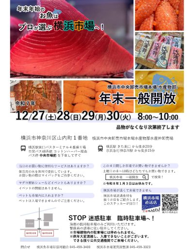 横浜市中央卸売市場本場の水産物部の仲卸売場を一般開放します。